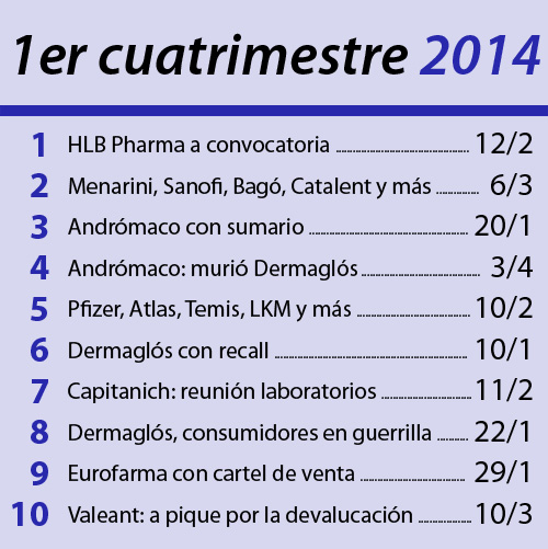 Las notas “Andrómaco con sumario” del 20 de enero; “Andrómaco: murió Dermaglós” del 3 de abril; “Dermaglós: consumidores en guerrilla” publicada el 22 de enero y “Dermaglós con recall” del 10 de enero, se ubicaron en distintas posiciones en el ranking de lo más leído. Todas ellas combinadas superaron en visitas a la propia de HLB, que detentó el primer lugar.