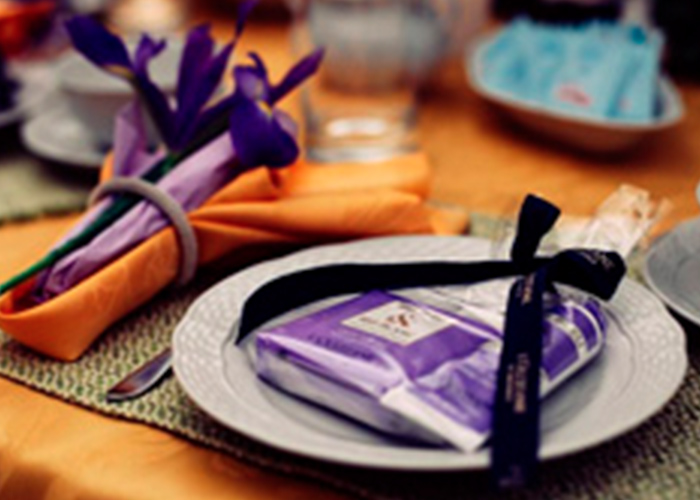 En toda la deco primó el color lila, incluso en el gran centro de mesa floral, y en cada plato la marca dejó como obsequio un kit con productos de esta nueva línea