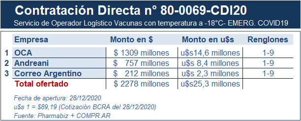 Contratación logística vacuna COVID-19, con polémica. #ComprasPúblicas #Logística #VacunaCovid19 #CorreoArgentino #Andreani #Farma #Pharmabiz