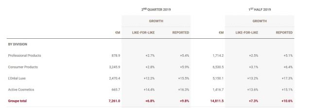 La francesa L`Orèal abrió las puertas de sus resultados semestrales hoy martes 30 de julio. La multi dijo que las ventas del grupo crecieron 10.6% a nivel global impulsadas fundamentalmente por Lujo y Active Cosmetic. Ver Press Release.