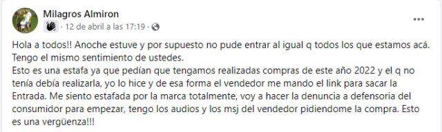 Extremely disappointed customers didn’t hold back in making themselves heard on social media. For instance, Miracles Almirón, a stylist from Buenos Aires, posted on Facebook in the ad hoc group baptised «L’Oréal at the Colón«: «Last night I was there and I couldn’t get in. This is a scam, since it was necessary to have made purchases in 2022 and if you hadn’t made purchases, you had to make one.«