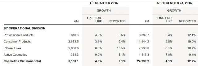 La francesa L’Oréal presentó hoy sus resultados anuales 2015. Desde París, la compañía mostró un buen desempeño en todas sus unidades de negocio.
