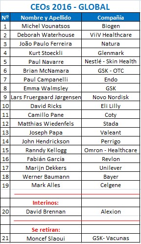 El 2016 que terminó de ser clausurado, fue súper activo en materia de cambios de CEOs. Aunque la nómina no superó los nombramientos del 2015. Ver artículo.