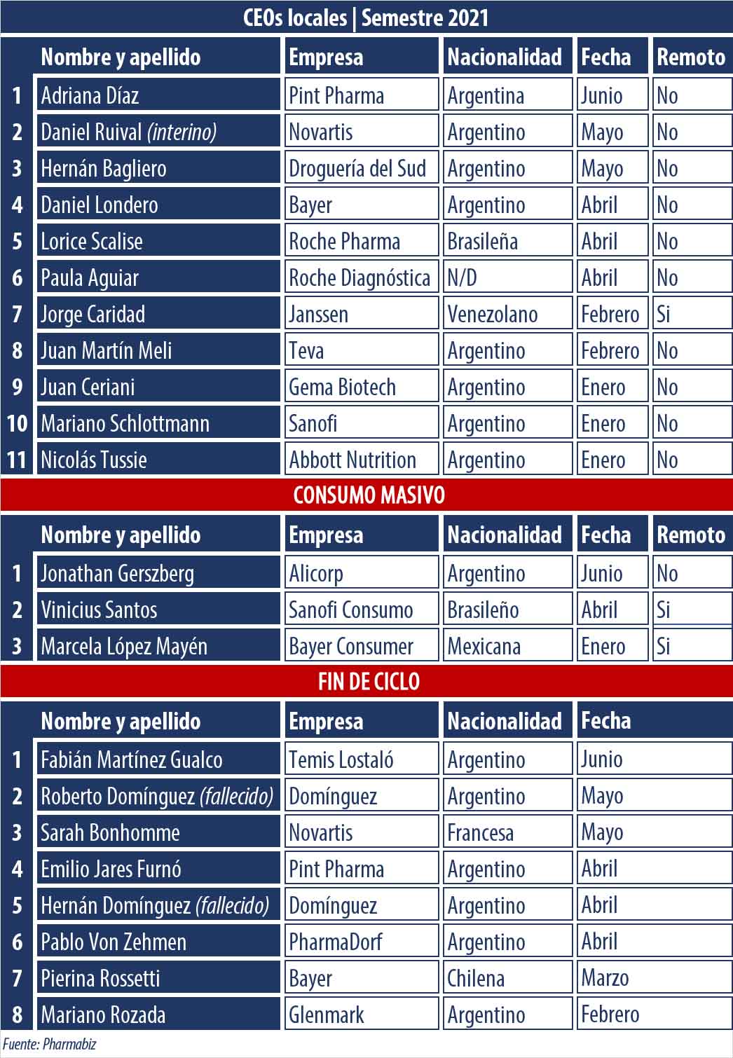 El 2021 comenzó marcado a fuego por el COVID-19. Pero la pandemia no impidió que múltiples compañías de farma cambiaran de titular en el primer semestre que acaba de terminar. Varios ejecutivos estrenaron sillón principal en el país, al tiempo que algunas gerencias generales quedaron vacantes.