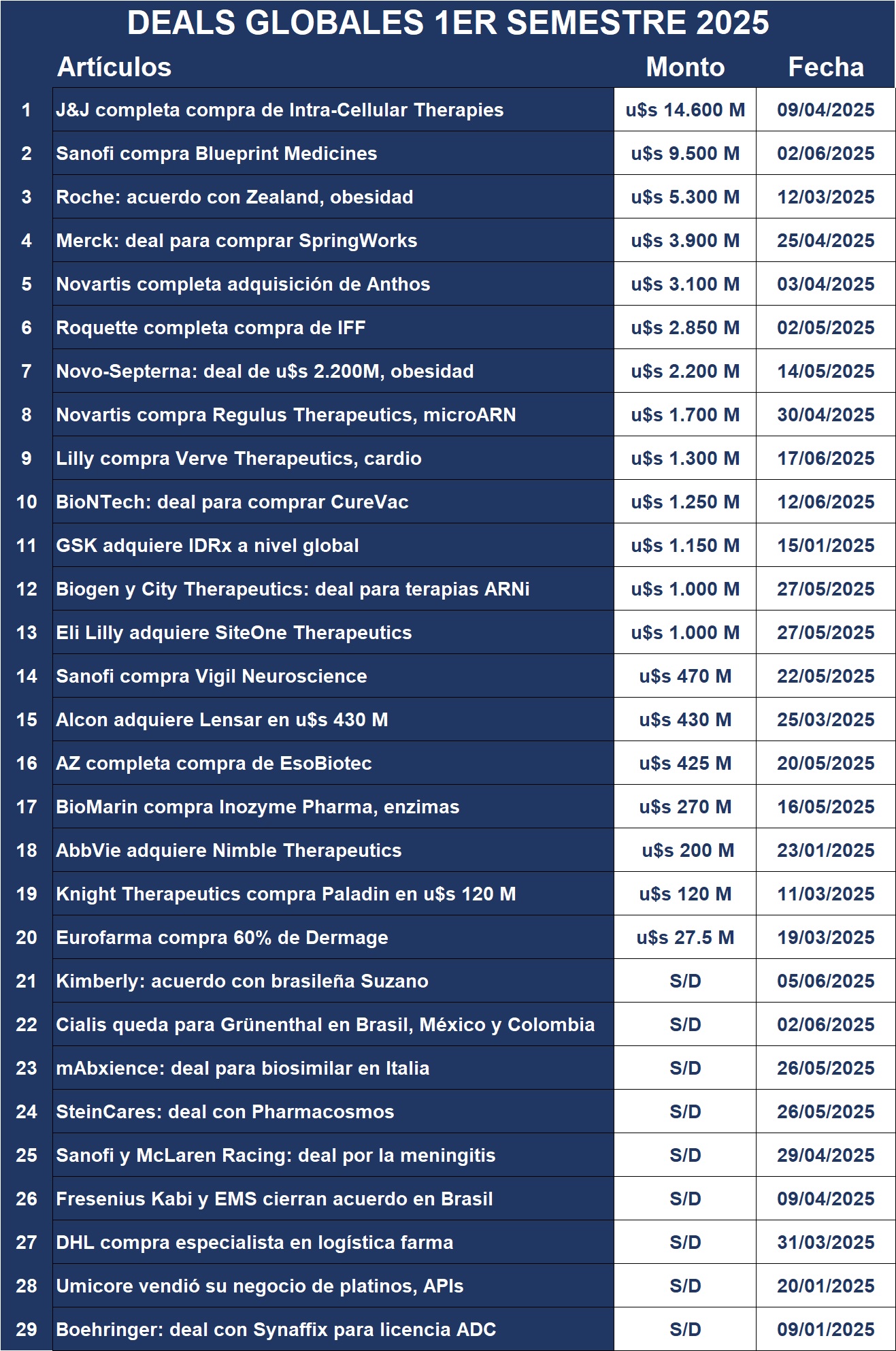 Tras un 2024 donde las farmacéuticas cerraron acuerdos estratégicos de poca envergadura en lugar de adquisiciones a gran escala, las grandes del sector transitaron la primera mitad del año con un enfoque en la expansión de la cartera de productos y el crecimiento estratégico.