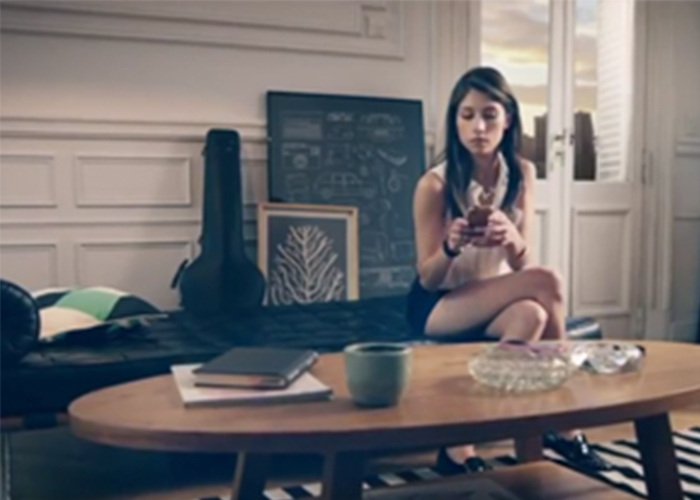 Preguntan por ejemplo “¿qué pasa si dejás a tu novia sola con tu celular?” y muestran cómo un hombre impecable llega a tiempo para interponerse entre el celular y ella y robarle un beso.