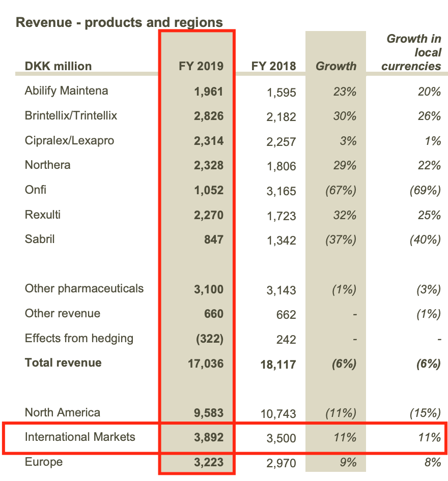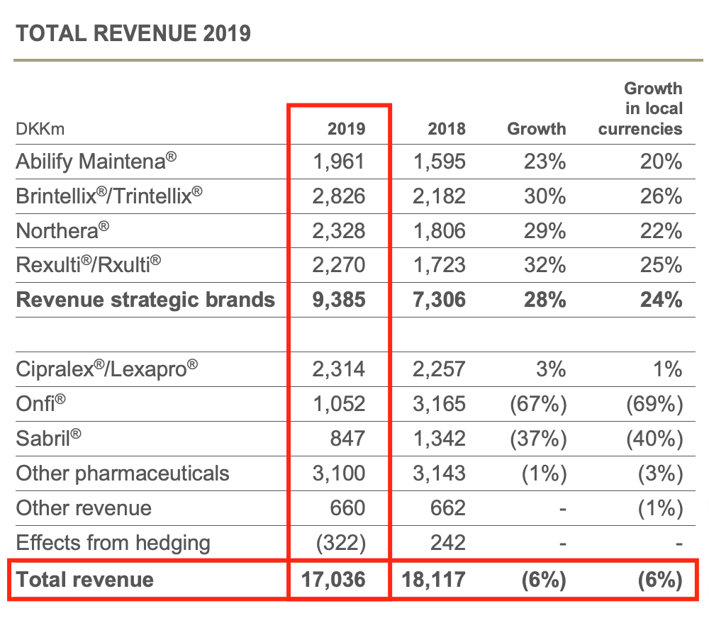 La danesa Lundbeck, especializada en sistema nervioso central, presentó su reporte de resultados anuales para el 2019. Allí mostró una caída del -6% en las ventas globales, con una facturación de 17.036 millones de coronas danesas (u$s 2.508 millones).