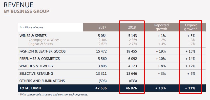Todos sus negocios combinados le representaron una facturación total de €46.826 millones logrando superar así las ventas del 2017 que habían sido de € 42.636 millones. Esta cifra se vio traducida en un incremento del 11% a nivel global.