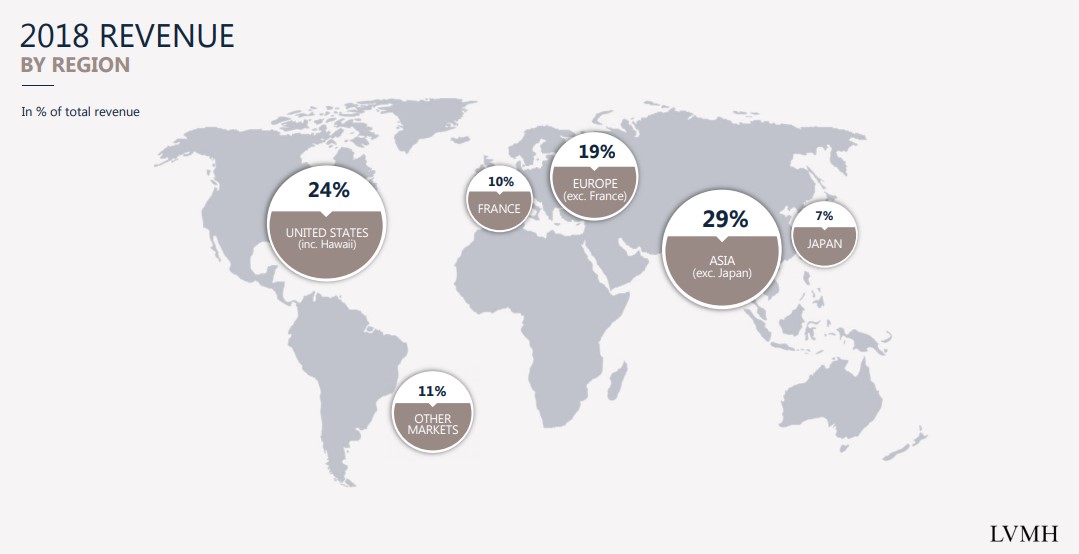El continente asiático sigue concentrando la mayor cantidad de ventas para la corporación francesa. En conjunto con Estados Unidos le devolvieron el 53% de las ventas a lo largo del 2018.