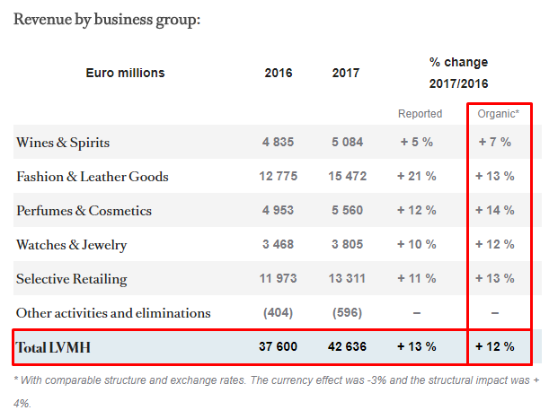 Combinados, todos sus negocios le representaron una facturación de €42.636 millones logrando superar las ventas del 2016 que fueron de €37.600 millones. Esta cifra se vio traducida en un crecimiento en ventas del 12%. Ver press release