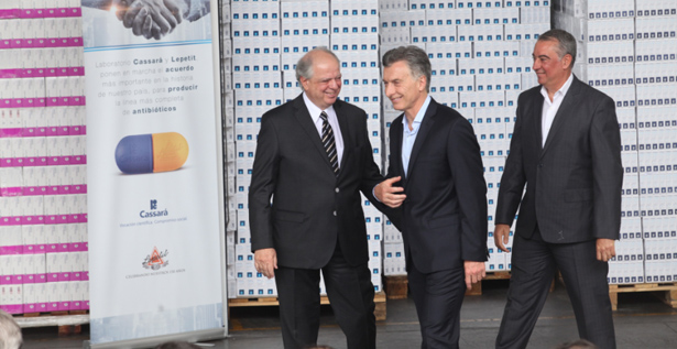Y este escenario no fue casual. Macri llegó a la planta de Mataderos, propiedad de la familia Cassará para inaugurar la nueva etapa del convenio «uno a uno» entre la mayor obra social del continente y la industria farmacéutica local.