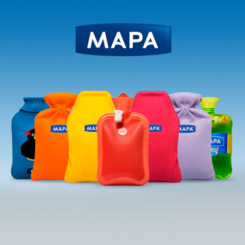 Todo esto a fin de desplegar en el canal profesional sus bolsitas de látex Mapa. Las mismas tienen 2 lts. de capacidad y se comercializan a un precio que va desde los $940 (u$s 9,53) a los $1.800 (u$s 18,25). Entre las presentaciones resaltan su línea con fundas de polar, con cierres y tejidas. También cuenta con versiones semi transparentes bautizadas «Fun». Ver sitio Mapa