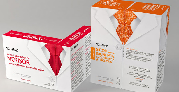 Algunas empresas se salen del molde. Tal es el caso de Dr. Hart, una marca de Rumania, que diseñó un packaging que simula la vestimenta de un médico. Ver Sitio.
