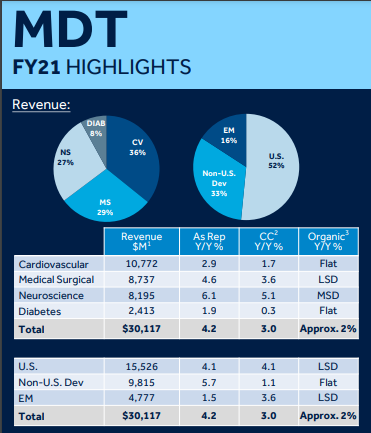 Tal fue el caso de la irlandesa Medtronic, que ahora logró remontar sus ventas. La firma, que tiene un calendario financiero diferente, dijo que en su año fiscal 2021 logró crecer un 3% en moneda constante en su facturación, según su reporte de resultados publicado hoy. La performance de la multi se vio apalancada por el negocio de Neurociencias, que registró una variación del 5.1% en el período. Ver Annual Report Medtronic.