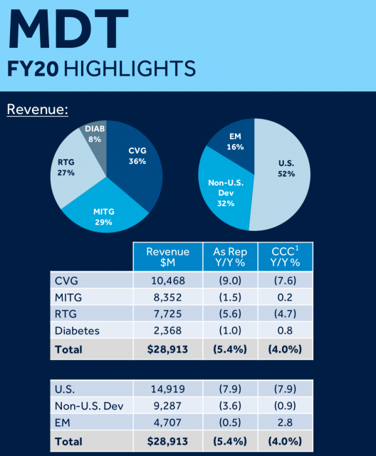 Medtronic publicó sus resultados anuales el 21 de mayo de 2020. Se trata de una corporación que mantiene un calendario fiscal diferente al de la mayoría de las compañías.