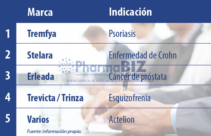 La multinacional tiene una prolífica lista de productos en agenda. Resaltan por caso Tremfya, para psoriasis; Stelara, para Enfermedad de Crohn; el oncológico Erleada; y el antipsicótico Trinza.