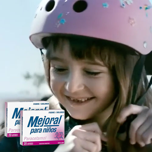 Jugar descalzos, chapotear en el barro, nadar y andar en skate, son las distintas proezas que realizan los protagonistas, y a través de las cuales la compañía hace hincapié en los tres radios de acción de Mejoral para niños: fiebre, dolores y golpes.