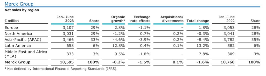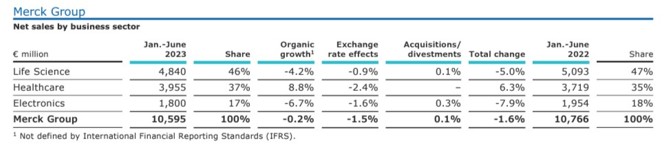 El laboratorio Merck registró una desaceleración del –1,6% en sus ingresos durante el primer semestre de este 2023. La alemana publicó hoy, jueves 4 de agosto, su reporte de resultados, en el que informó una facturación de €10.595 millones. Ver Press Release