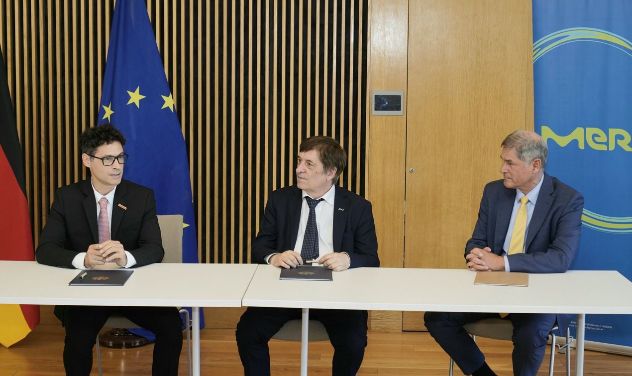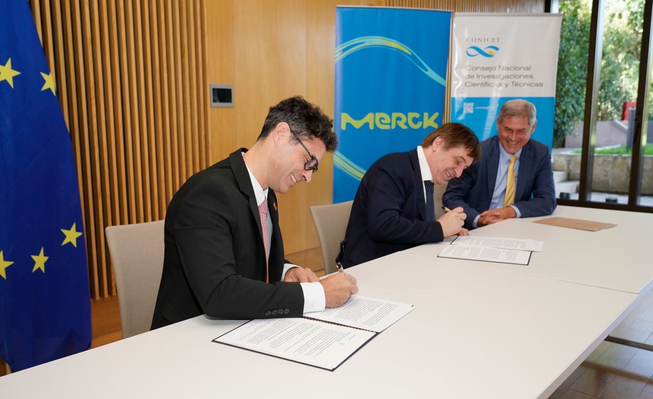 Los que participaron de la firma fueron el gerente general de la Merck alemana en la Argentina, Marcelo Ponte junto con Daniel Salamone, presidente del CONICET y Peter Neven, Ministro de la Embajada Alemana en Argentina.