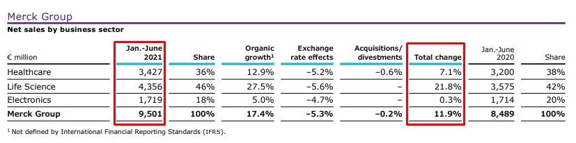 El desempeño de la compañía estuvo impulsado por su unidad de Life Science que trepó un 21.8% a € 4.356 millones. En este negocio, las ventas netas se recuperaron con fuerza en todos los segmentos en comparación con el mismo período del año anterior, que se vio afectado por los bloqueos relacionados con la pandemia del COVID-19. Ver Reporte.