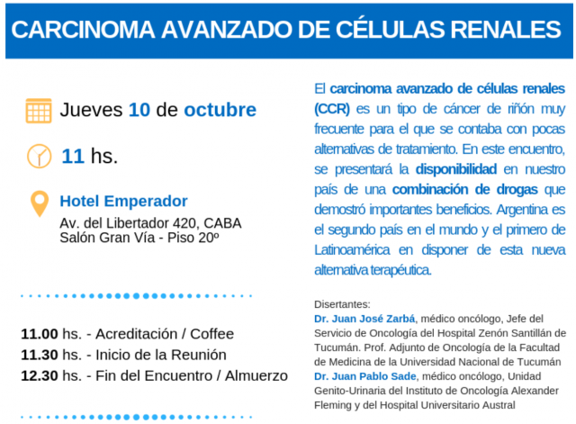 La alemana Merck y la norteamericana Pfizer están presentando un nuevo tratamiento en la Argentina, para carcinoma avanzado de células renales.