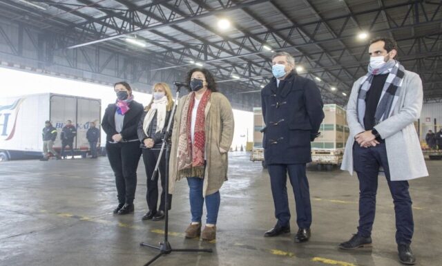 La ministra de Salud de la Nación, Carla Vizzotti, recibió hoy en el Aeropuerto Internacional de Ezeiza el primer cargamento con más de 2.7 millones de dosis de la vacuna contra el coronavirus del laboratorio Moderna. Las unidades serán aplicadas en población pediátrica de 6 meses a 5 años de edad. Ver Comunicado.