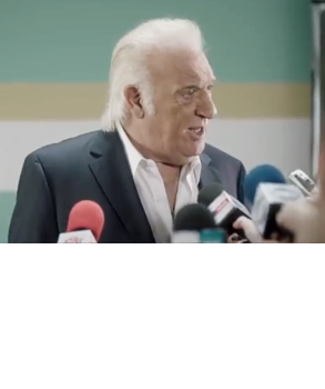 En ese momento, irrumpe en escena el ex director técnico de fútbol, Alfio, «Coco» Basile que con su característica voz ronca comienza a toser en medio de una conferencia de prensa. Allí, le alcanzan el vaso de agua «liberado».