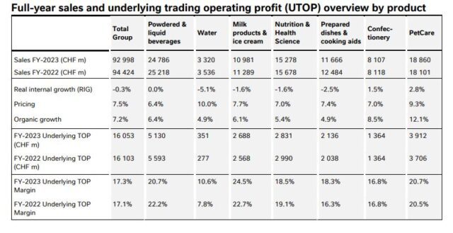 “La inflación sin precedentes de los últimos dos años ha aumentado la presión sobre muchos consumidores y ha impactado la demanda de productos alimenticios y de bebidas«, dijo Mark Schneider, CEO de Nestlé. «En este contexto desafiante, logramos un fuerte crecimiento orgánico y una sólida mejora de los márgenes con un mayor marketing y otras inversiones de crecimiento», agregó.
