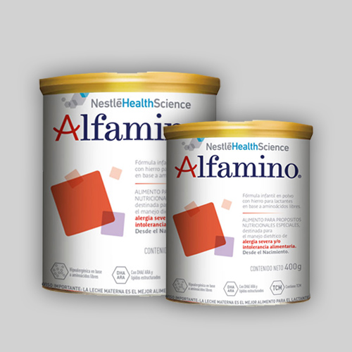 Se trata de Alfamino, una línea en polvo hipoalergénica indicada para lactantes que presenten alergia a la proteína de leche de vaca –APLV– e intolerancia alimentaria. Además, y según lo consigna el envase, es la única 100% hidrolizada, sin lactosa y sin gluten.