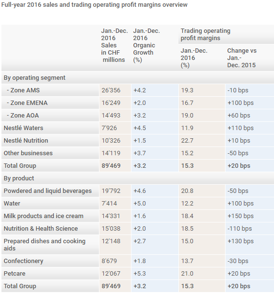 En cuanto a las ventas totales de Nestlé, las mismas crecieron un 3.2%. Lo cual se vio reflejado en una facturación de 89.5 mil millones de francos suizos.