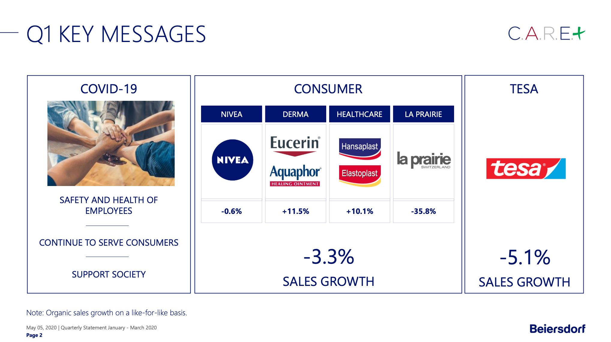 Así por caso, una de las compañías del sector que sintió el impacto de la pandemia fue la alemana Beiersdorf. En sus resultados trimestrales la multi mostró hoy que su desempeño fue en caída libre. Derrapó un -3.6% en facturación versus el mismo período del año pasado. Ver press release.