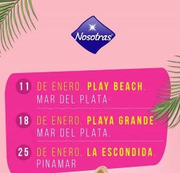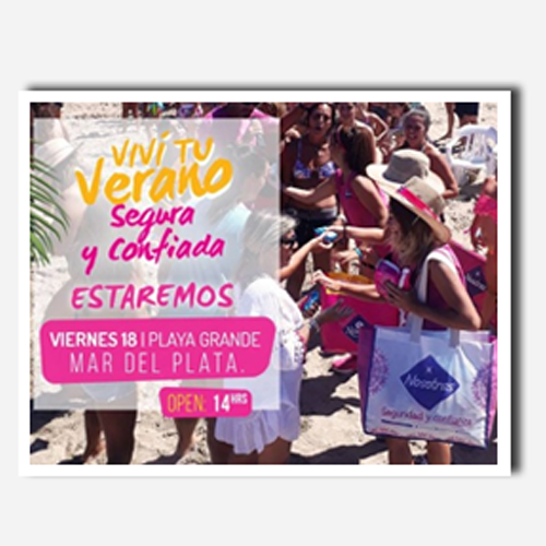 La marca de protección femenina Nosotras, del latino Grupo Familia, se instaló en la arena de Mar del Plata de la mano de su «Nosotras team» a fin de promocionar sus líneas. El próximo fin de semana plantará bandera en Pinamar.