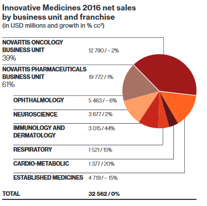La suiza Novartis puso sobre la mesa sus resultados 2016. Allí desplegó las barajas y mostró que su negocio de Medicinas Innovadoras le representó el 67% de sus ventas.Ver press release.