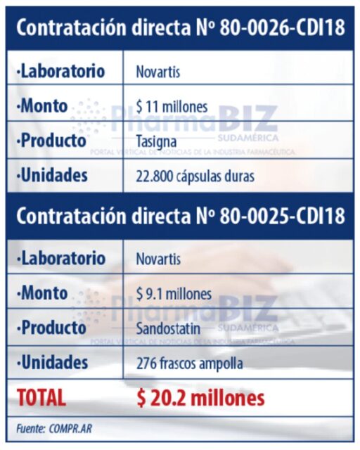 El Ministerio de Salud le adjudicó dos Contrataciones Directas a la suiza Novartis. El organismo desembolsará un total de $20.2 millones (u$ss 832 mil) por la adquisición de los oncológicos Tasigna y Sandostatin.