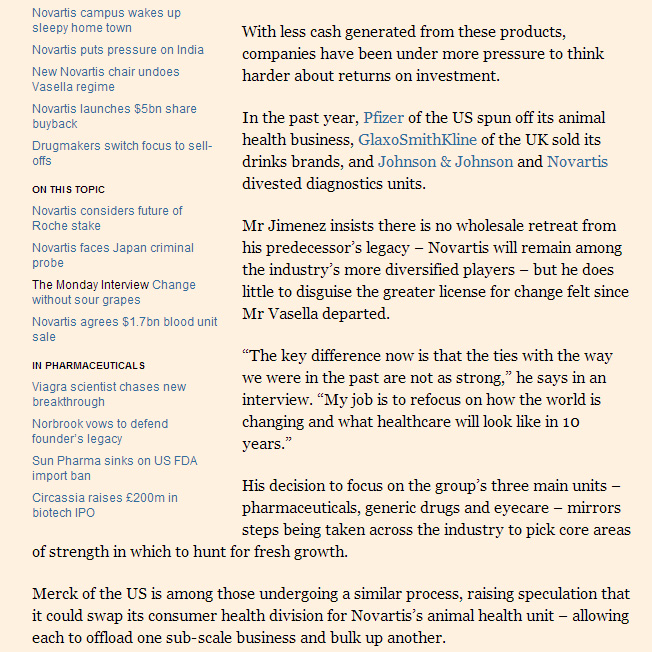 Ahora, con su viejo jefe retirado, Jimenez lanzó una estrategia de gran alcance que probablemente permita que Novartis pase a ser una organización más magra y más focalizada.