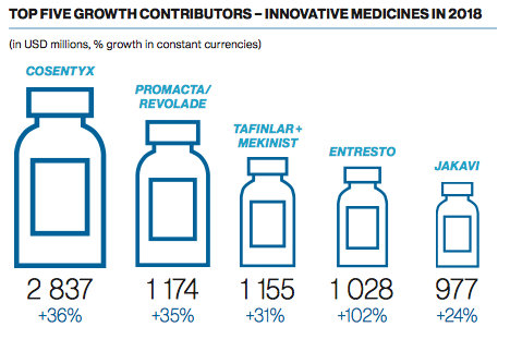 Aunque si se pone la lupa en la performance del 2018 en comparativa con la del año anterior, Entresto fue la gallina de los huevos de oro. El producto, indicado para insuficiencia cardíaca, exhibió una suba del 102% en ingresos medidos en moneda constante.