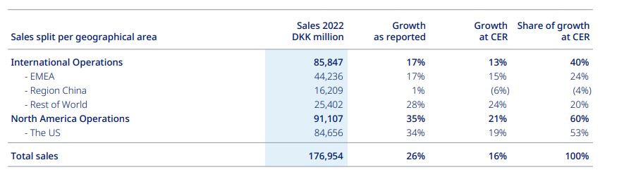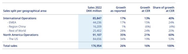 Al hacer un análisis por áreas geográficas, América del Norte creció un 49% y generó el 58% de los ingresos globales. Los Estados Unidos representaron el 98% de las ventas en esta región. En tanto, lo que Novo denomina Operaciones Internacionales aportó u$s 13.895 millones, escalando un 16% en moneda constante. El crecimiento más fuerte en este mercado fue en Europa, Oriente Medio y África -EMEA- (+15%) ya que Wegovy y Ozempic están aprobados en varios países europeos.