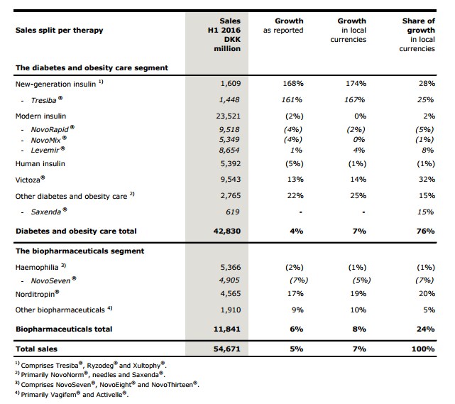 Novo Nordisk difundió sus resultados del primer semestre de 2016. En el período, la multi creció un 5% en ventas.