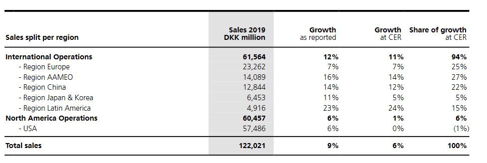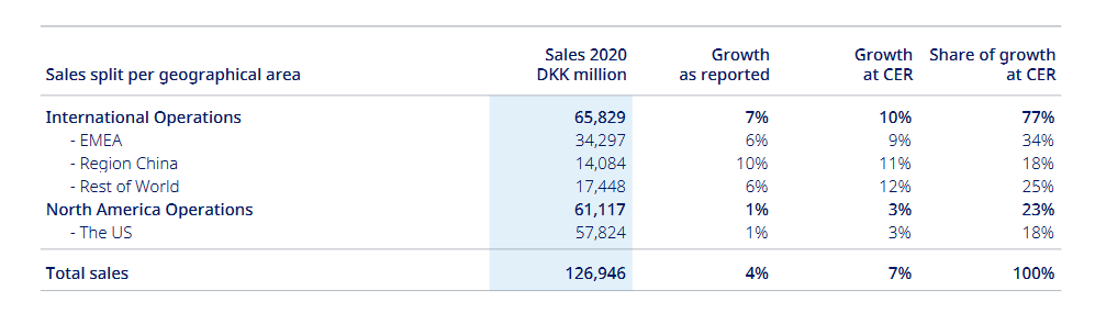 Al detallar su performance por regiones, Novo Nordisk dijo que el 51.9% de sus ingresos provino de sus Operaciones Internacionales, que le generaron en el año un crecimiento en moneda constante del 10%. El 48.1% restante se originó en América del Norte, que incluye a Estados Unidos y a Canadá, y cuya facturación mostró un leve increcmento interanual del 3%.
