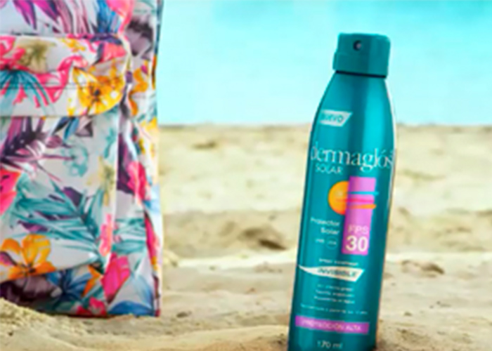 El laboratorio nacional Andrómaco puso en el mercado nuevo protector solar y nueva campaña para su Dermaglós invisible en spray.