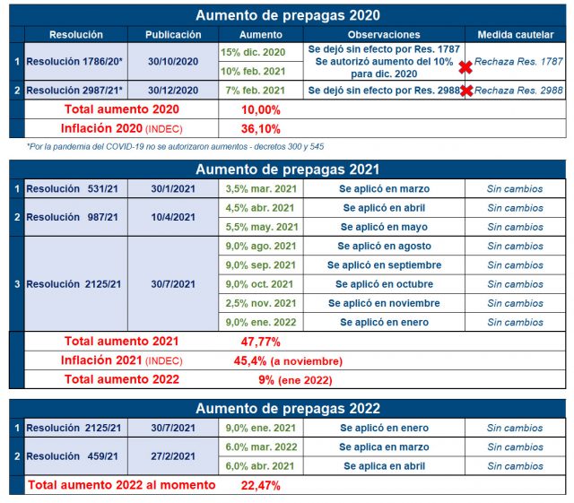 Las empresas de medicina prepaga van por su revancha en este 2022. Después de un 2020 en que los aumentos estuvieron bajo cuerda, y un 2021 en el que se retomó cierta normalidad, ahora se avaló un reajuste para marzo y abril. Al momento hay luz verde para un 22.47%.