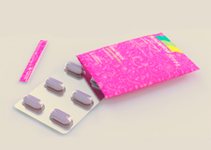 Se muestra un nuevo diseño -una especie de sobre de color rosa- que parece enfocarse en un target más juvenil. En el diseño también sobresale la funcionalidad. Es un formato práctico y fácil de manipular y transportar. Cada sobre contiene un blíster con seis comprimidos.