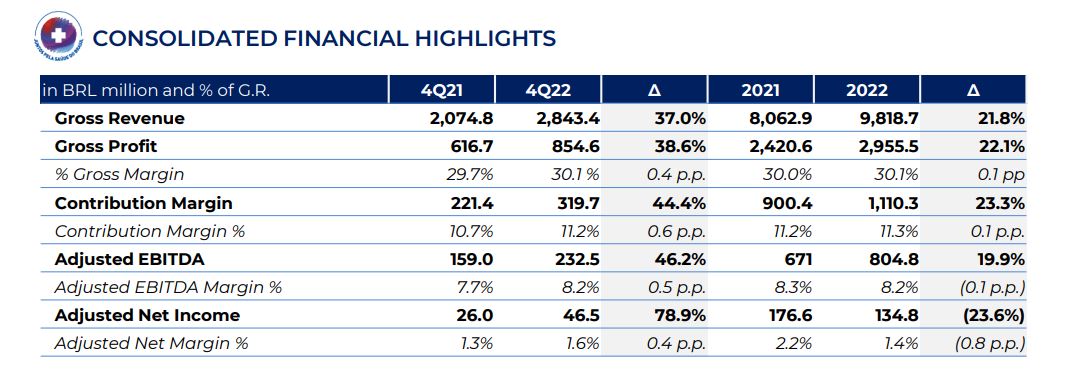 La brasileña Pague Menos, una de las cadenas de farmacias más importantes del país, registró en 2022 un incremento en sus ingresos del 21,8% a R$ 9.818,7 millones (u$s 1.892,6 millones). La suba fue impulsada por un crecimiento orgánico del 10,5% y por la consolidación por primera vez en su balance de Extrafarma, la cadena que compró en mayo de 2021. Ver Press Release.
