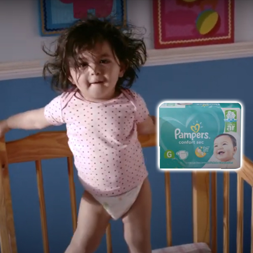 La multi de consumo masivo P&G pone a los bebés a bailar y a saltar al ritmo de «Mueve tu cucu«. El objetivo es mostrar su ajuste completo y su nivel de confortabilidad.
