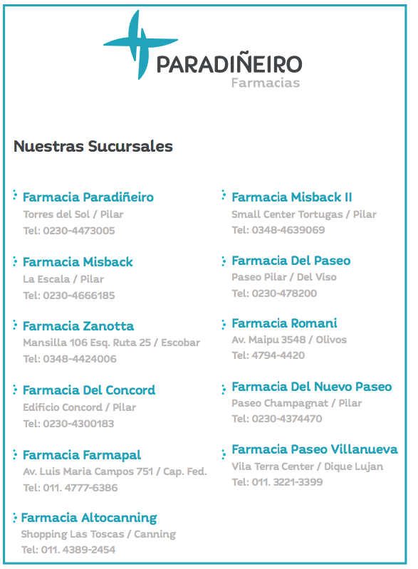 Con esta apertura, el retailer fundado por Hugo Paradiñeiro está operando con un total de 11 bocas, las que están ubicadas principalmente en Pilar. también tiene farmacias en Del Viso; Olivos; Escobar; y Canning, entre otras localidades.