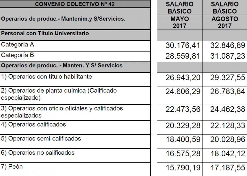 A su vez, para agosto de 2017, empresas y sindicato pactaron un nuevo rango salarial. El mismo profesional recibirá $32.846,89 (u$s 2055,37) como monto básico para responder al sueldo de ese mes y al de los posteriores.