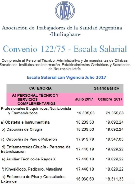 De modo que, un profesional bioquímico, nutricionista o farmacéutico que se desempeñe en clínicas, sanatorios, institutos con internación, neuropsiquiátricos o geriátricos, cobrará un básico de $19.500 en julio, que se trasladará a $21.000 en octubre.