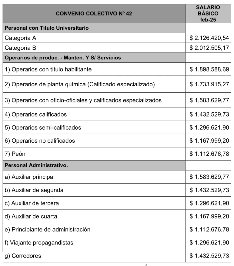 En el marco del Convenio Colectivo de Trabajo 42/89, se definió que para el personal de mayor rango en el escalafón, es decir quienes tengan título universitario categoría A, percibirán ingresos por $ 2.126.420,54 (u$s 1.954,70) en concepto de los sueldos de febrero. Mientras que el sueldo de un operario con título habilitante será de $ 1.898.588,69 (u$s 1.745,26) para el segundo mes del año. Por su parte, un operario calificado alcanzará los $1.432.529,73 (u$s 1.316,84) por este mes.