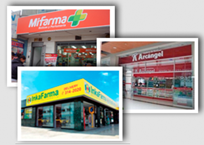 Las cadenas más importantes del país son Mifarma y Boticas Arcangel, del grupo Quicorp, e InkaFarma, que pertenece a Intercorp.