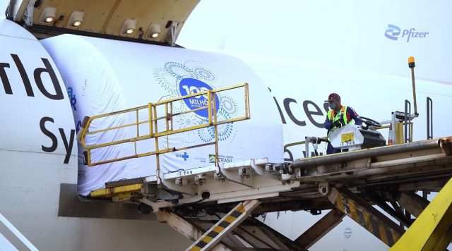 Las fotos que ilustran el posteo muestran en consonancia la recepción de un vuelo en el aeropuerto el que se acompaña con la iconografía del número 100 para identificar esta posta. Los medios brasileños relevaron este hecho y lo resaltaron como una instancia significativa. Esto marca un gran contraste con la Argentina, a donde se recepcionaron apenas 580 mil unidades mediante cuatro vuelos que se hicieron efectivos en septiembre. Ver artículo Pfizer en Argentina.